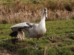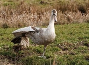 the swan walks.